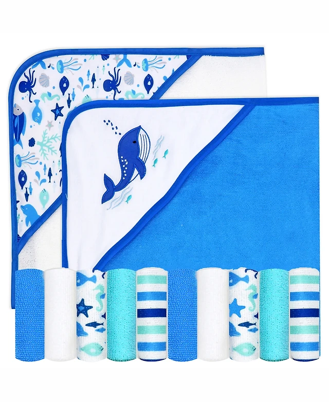 Baby Mode Signature Baby Boys Bath Towel, Washcloth, and Toys, 9 Piece Set