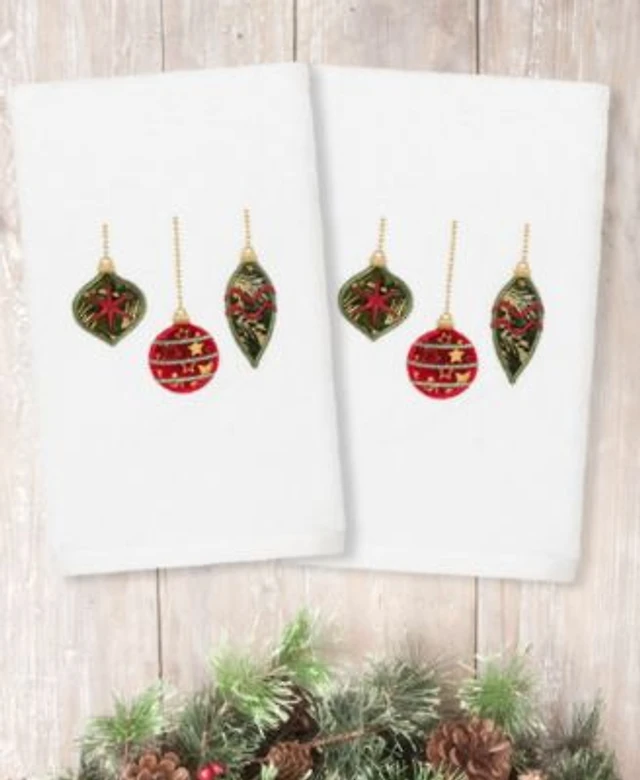 Linum Home Christmas Candy Canes Embroidered 100% Turkish Cotton Hand Towel