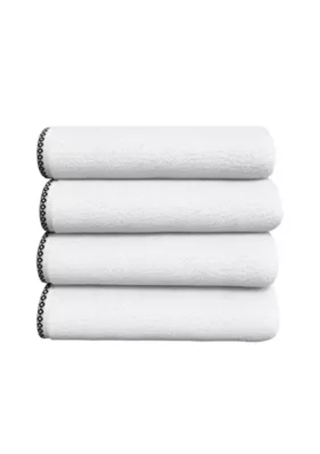 Quick-Dry Cotton Decorative Border 4 Pack Bath Towel Set