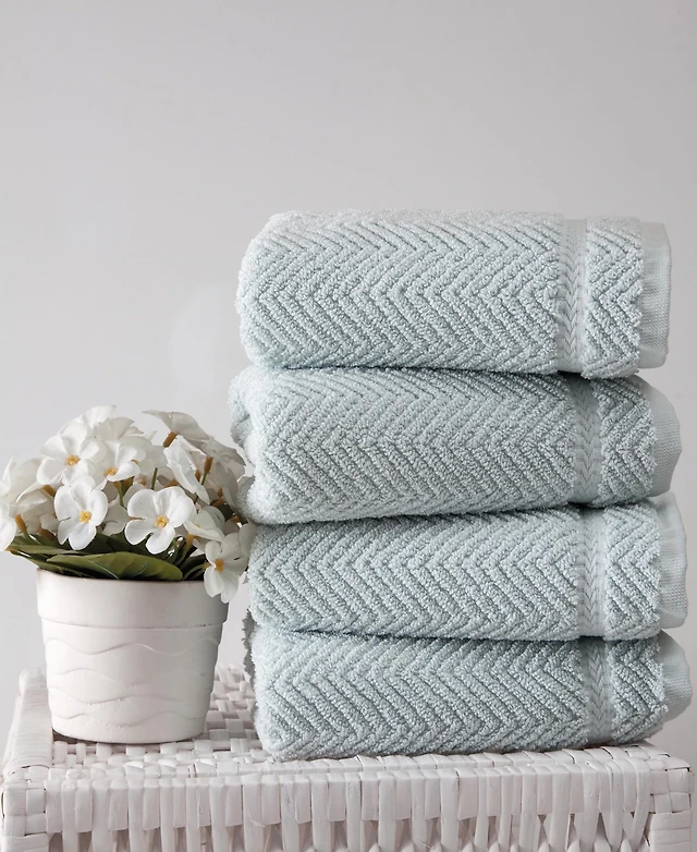 TOWN & COUNTRY LIVING 4-Piece Textured Windowpane Aqua Blue Bath Towel Set