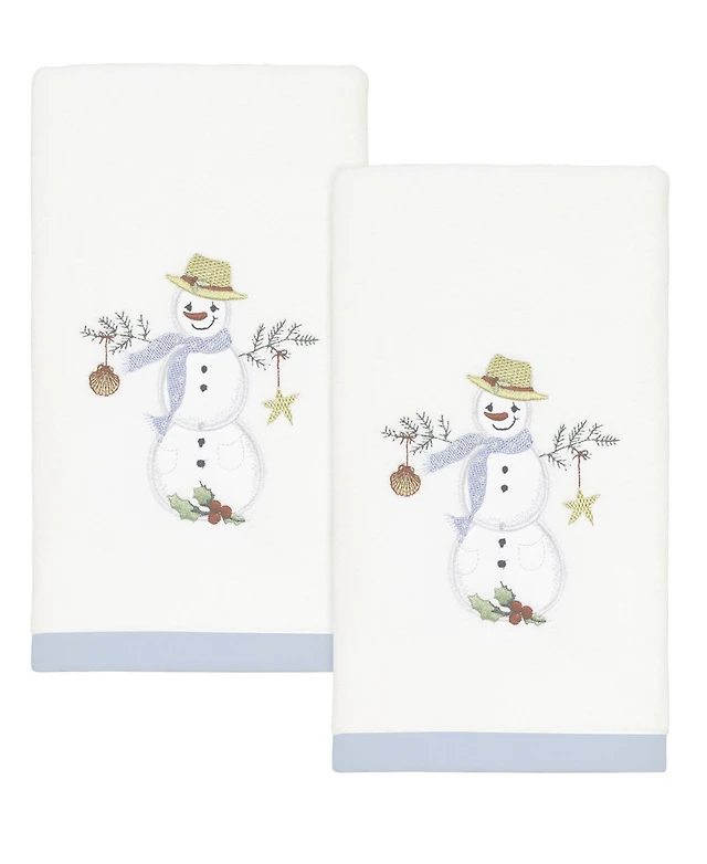 Christmas Snow Family Embroidered Luxury Turkish Cotton Hand Towel Set of 2