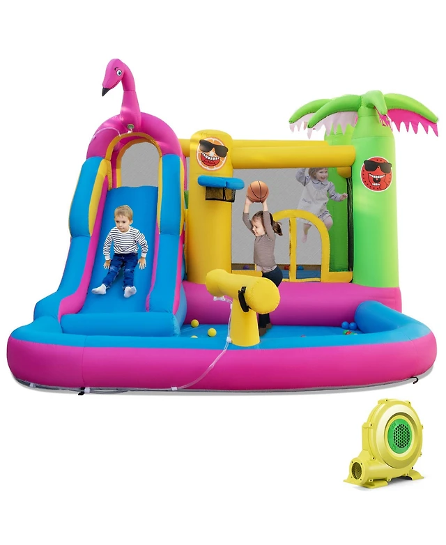 Gymax Tropical Inflatable Bounce Castle 8-in-1 Giant Jumping House with 680W Blower