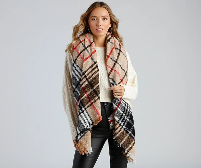 Cuddle Weather Plaid Fringe Blanket Scarf