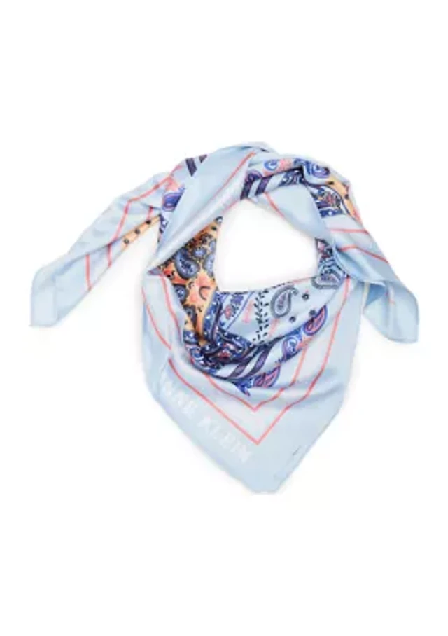Blue Fabric Paisley Satin Scarf