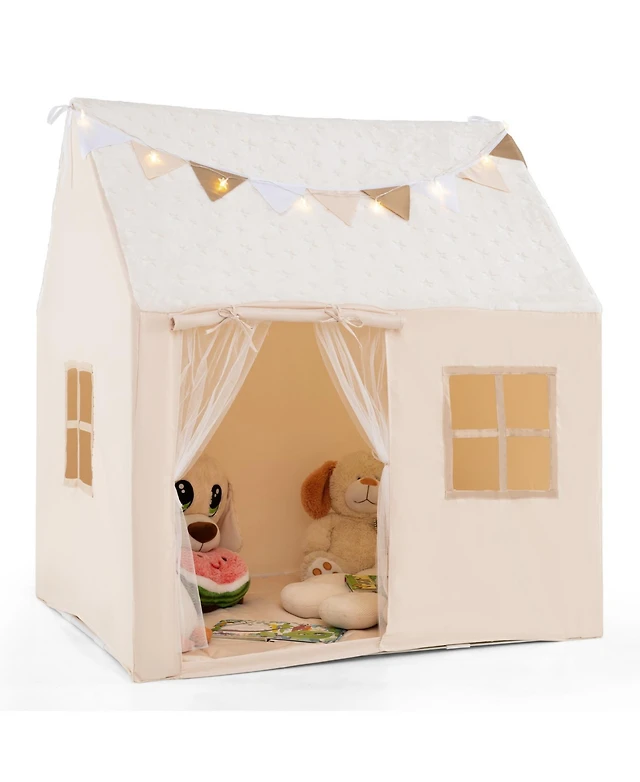 Costway Large Play Tent Kids & Toddlers Playhouse with Washable Cotton Mat, Star Lights