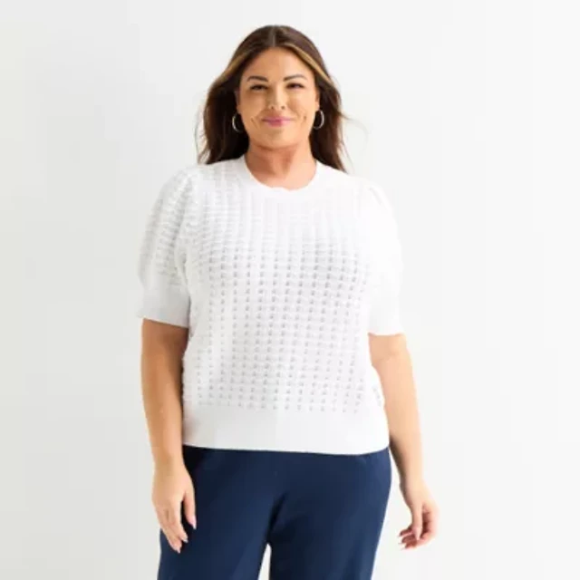 Liz Claiborne Plus Womens Short Sleeve Animal Pullover Sweater