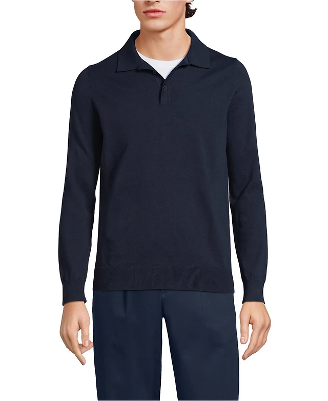 Lands' End Men's Cotton Drifter Saddle Crewneck Shaker Sweater