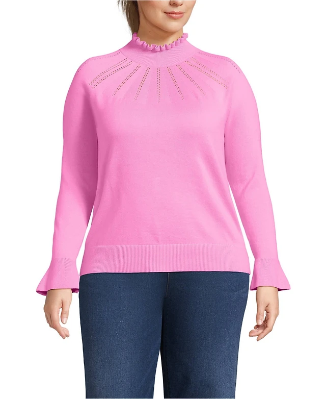 Lands' End Women's Cotton Blend Pointelle Crew Neck Sweater
