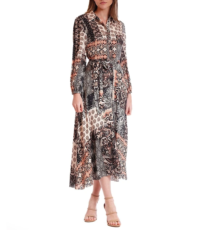 Calvin Klein Petite Printed Button Front Midi Shirtdress