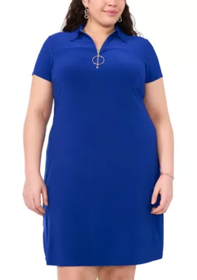 Collared Half Button Up Mini Portofino Shirt Dress