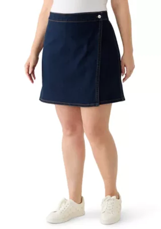 Curvy Low-Rise Medium Wash Denim Mini Skort