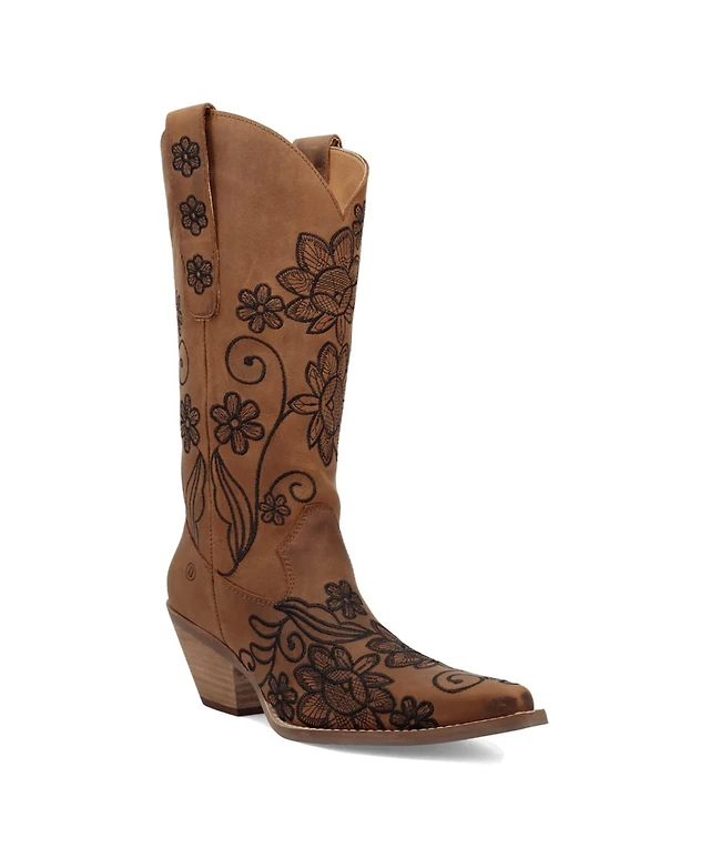 Dingo Womens Pretty 'N Pink Leather Stacked Heel Cowboy Boots