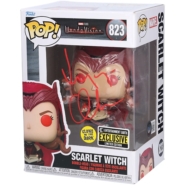 Elizabeth Olsen WandaVision Autographed Scarlet Witch #823 with Red Eyes Funko Pop! Vinyl Figure - Signed in Red Ink - BAS