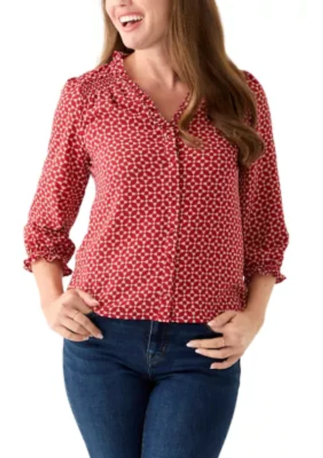 CeCe Women's Scallop-Edge Geo-Print Blouse