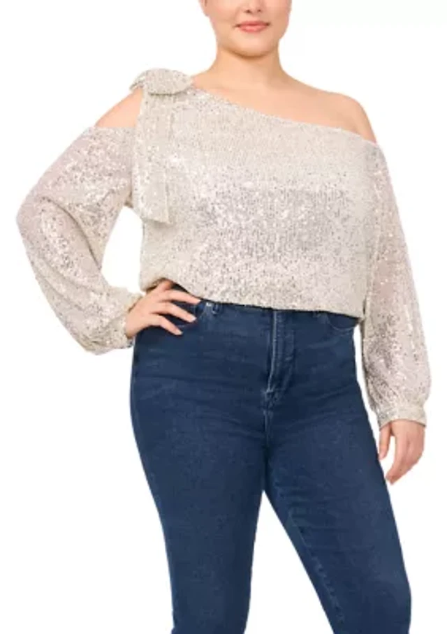 CeCe Plus Size Poplin Point Collar Long Sleeve Button Down Top