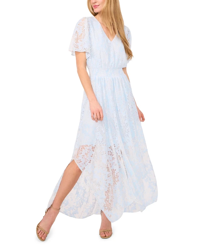 CeCe Women's Lace Flutter-Sleeve V-Neck Smocked-Waist Maxi Dress