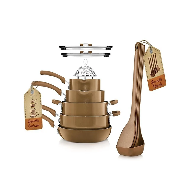 Anolon Nouvelle Copper Luxe Onyx Hard-Anodized Nonstick Cookware Set, 11 Piece