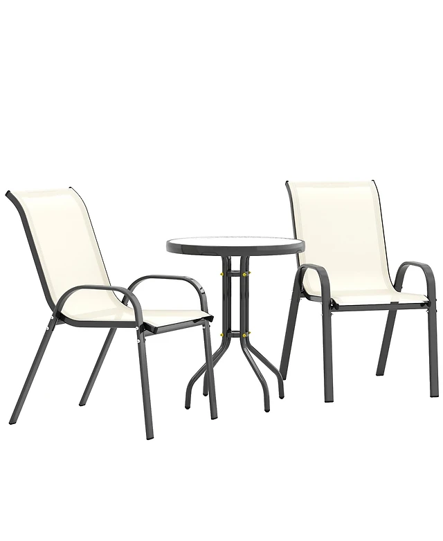 Outsunny Outdoor Bistro Set Small Patio Set w/ Stackable Chairs,