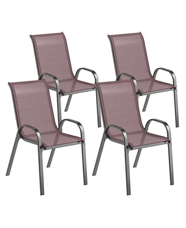 Gymax 4PCS Patio Stacking Dining Chairs w/ Curved Armrests & Breathable Seat Fabric Brown