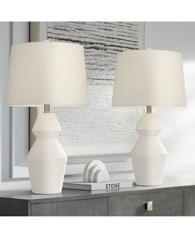 360 Lighting Carlton Modern Table Lamps 28" Tall Set of 2 Swirling Brown Faux Marble White Tapered Drum for Bedroom Living Room Bedside Nightstan