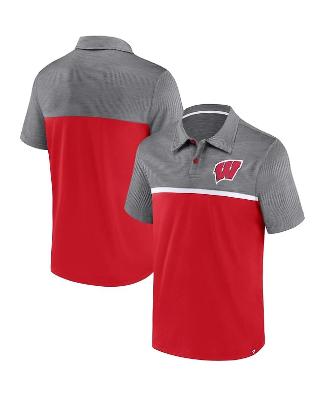 Men's Fanatics Red, Gray Wisconsin Badgers Polo Shirt