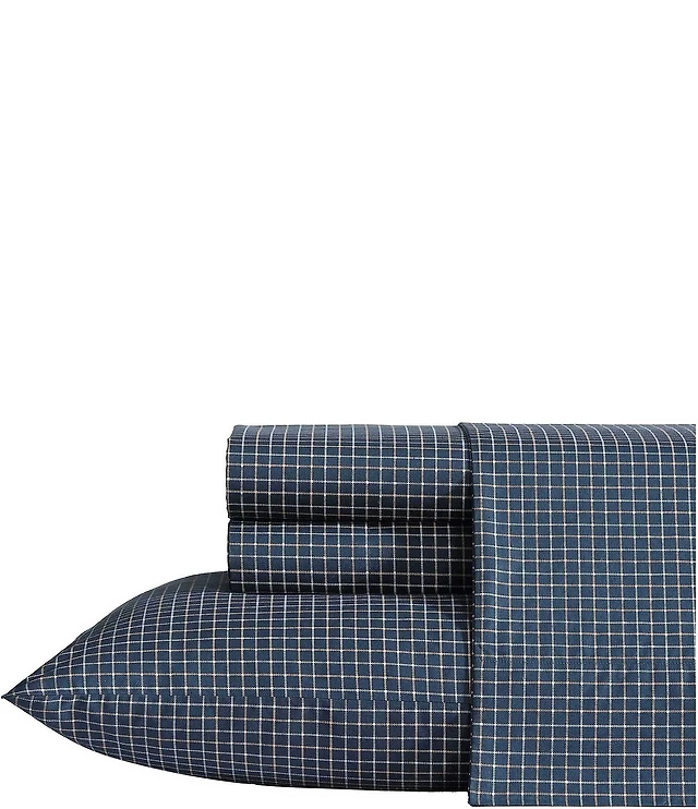 Nautica Reece Plaid Navy Cotton Percale Sheet Set