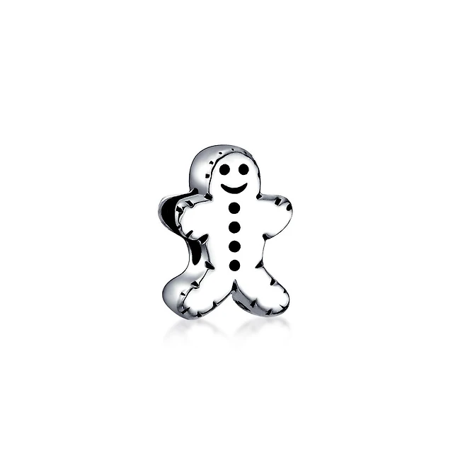 Bling Jewelry Christmas Charm Bead Gingerbread Man Cookie Shape Sterling Silver for Bracelets