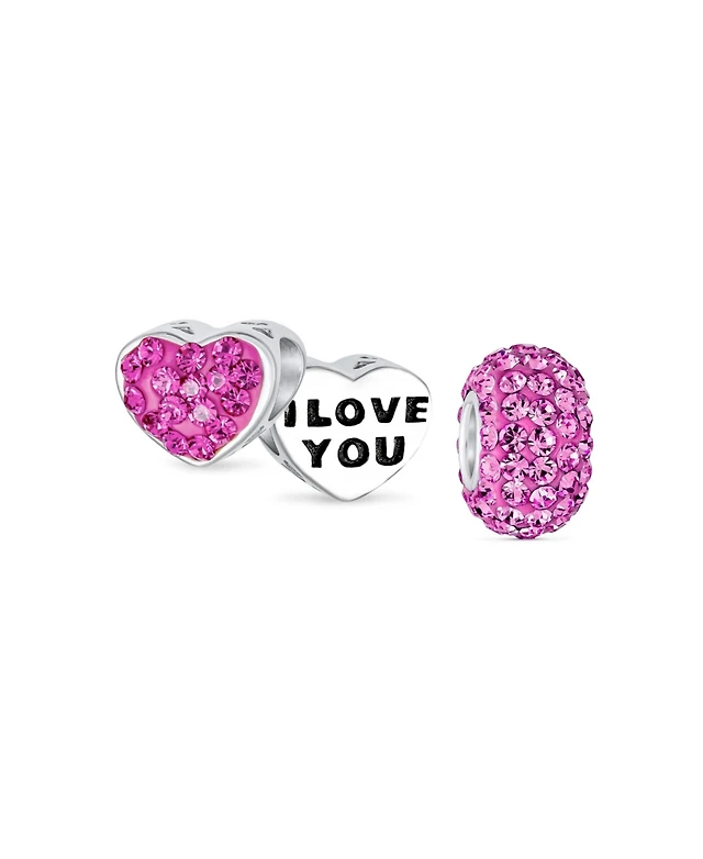 Bling Jewelry Set of 2 I Love You Princess Heart & Solid Pink Crystal Bead Charm Sterling Silver for Bracelet
