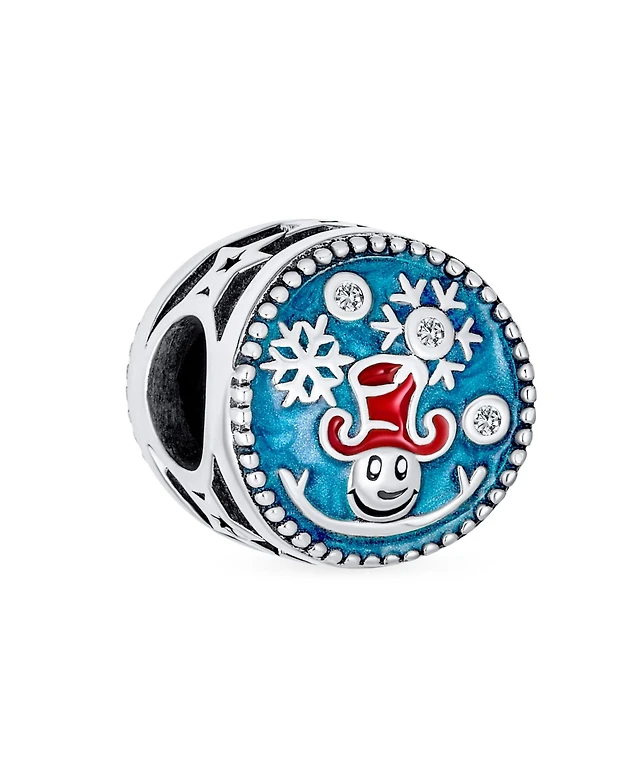 Bling Jewelry Frozen Winter Holiday Party Christmas Round Red Hat Bead Blue Enamel Snowflake Charm Sterling Silver For European Bracelet