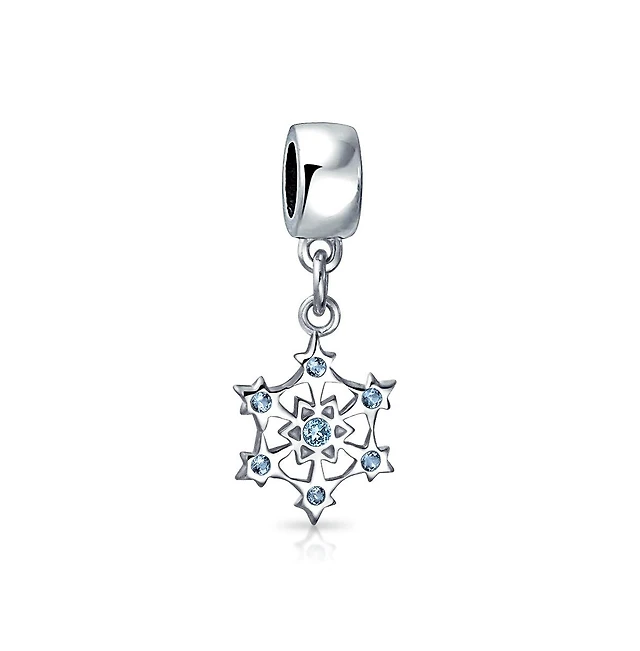 Bling Jewelry Frozen Winter Holiday Party Aqua Ice Blue Cz Christmas Snowflake Charm Bead .925 Sterling Silver For European Bracelet