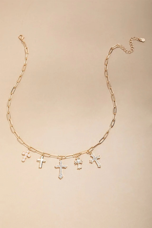 Silver Cubic Zirconia Cross & Heart Charm Necklace