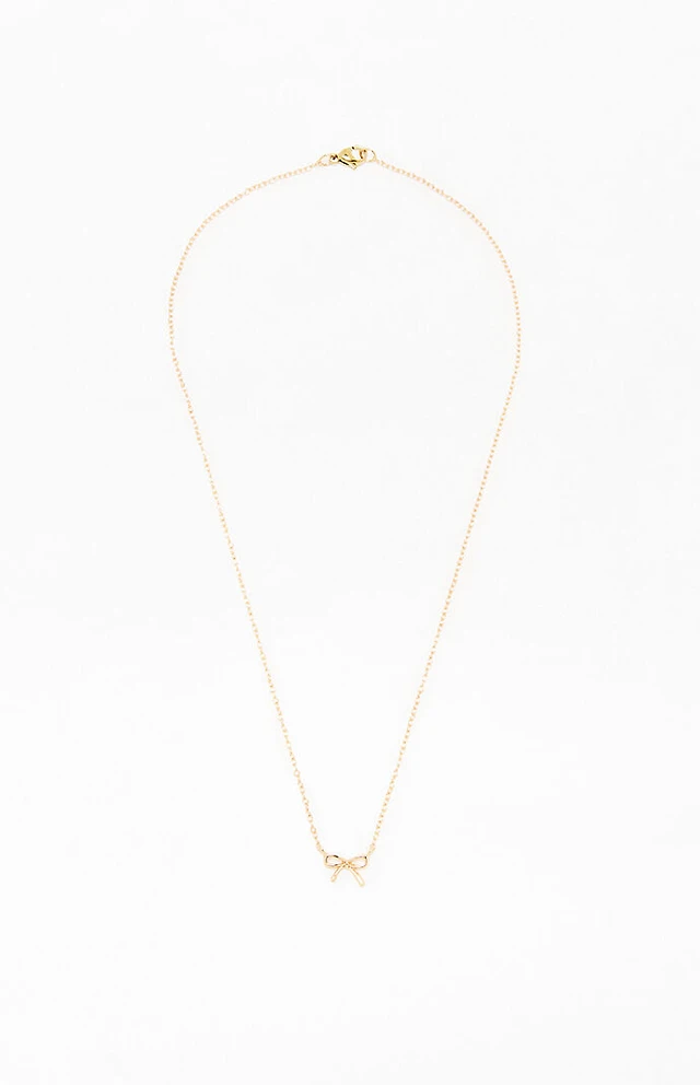 Gold Fine Metal Bow Necklace