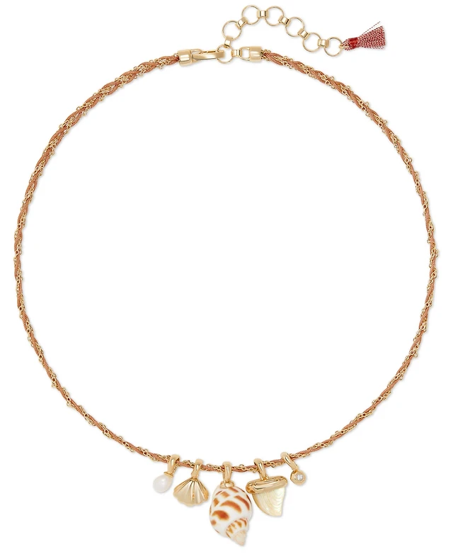 Adornia 18-20" Adjustable 14K Gold Plated Imitation Mother of Pearl Heart Charms Necklace