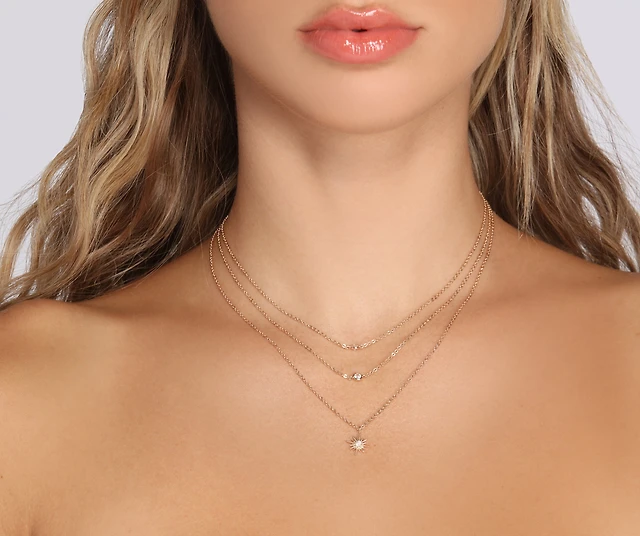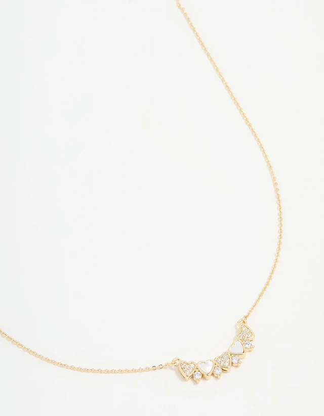 GiGiGirl Teens/Young Adults 14K Gold Plated Cubic Zirconia Moon and Star Heart Charm Necklace