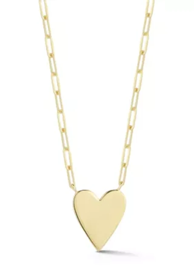 Long Chain Necklace with Bead Accent and Textured Heart Pendant