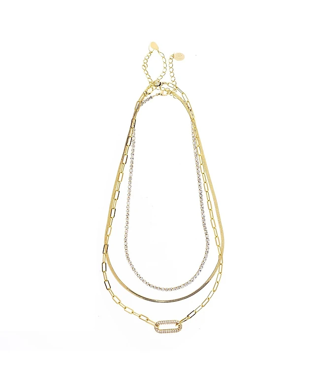 Simply Glam Sterling Silver Plated Cubic Zirconia Layered Necklace