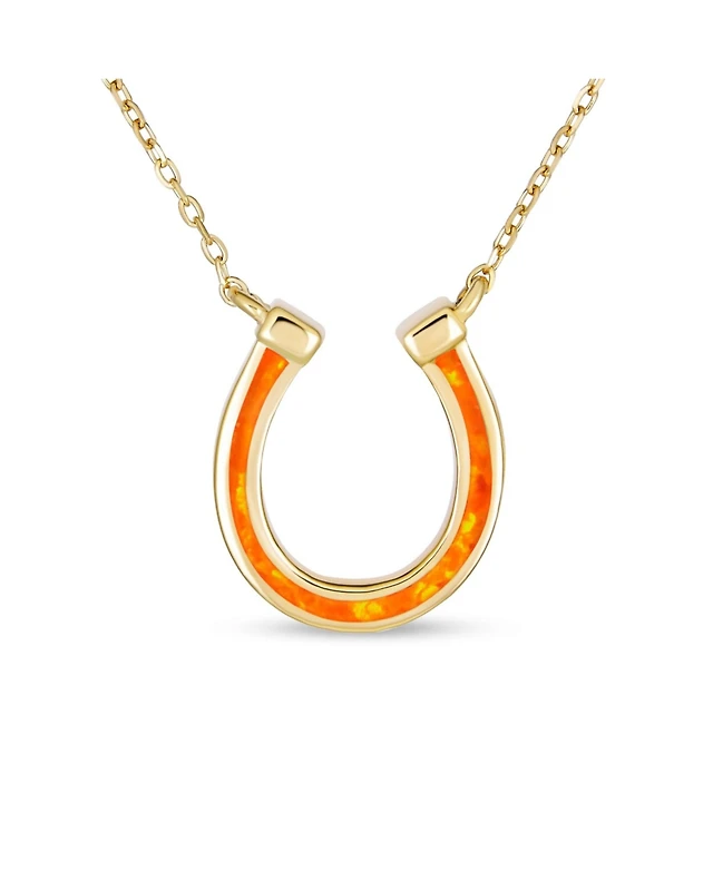 Bling Jewelry Delicate White or Orange Fire Created Opal Equestrian Good Luck Charm Horseshoe Necklace Pendant .925 Sterling Silver