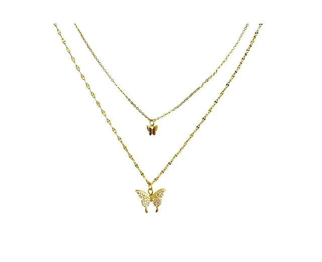 Fluttering Elegance: Gold Butterfly Two Layer Necklace