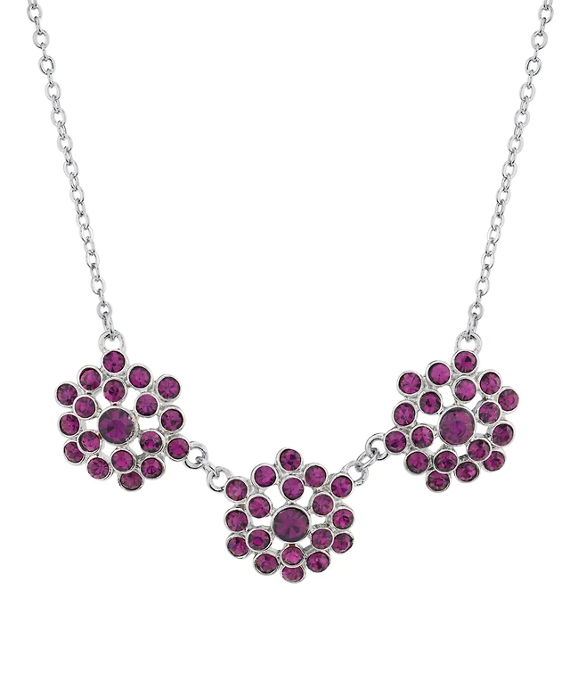 Nine West Glass Silver-Tone Pave Two-Row Necklace