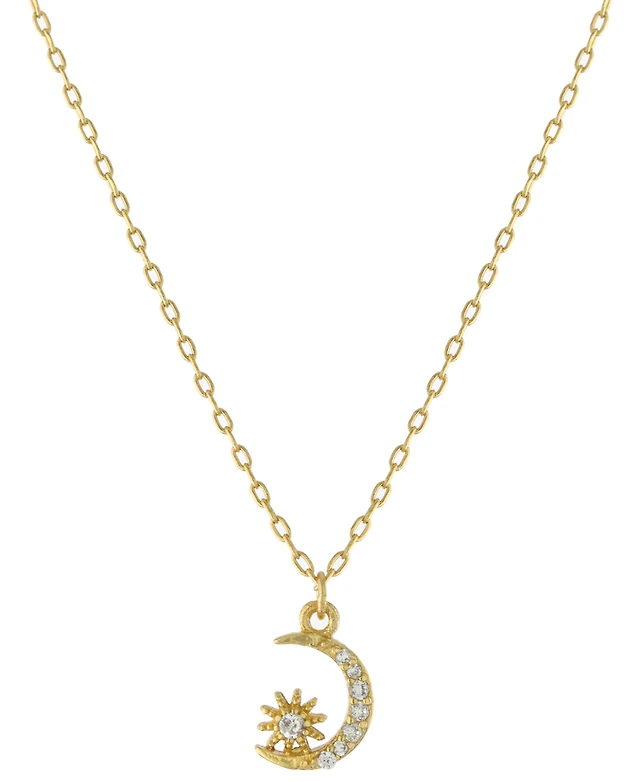 14K Gold Plated Sterling Silver Diamond Accent I Love You To The Moon And Back Pendant 18-Inch Necklace