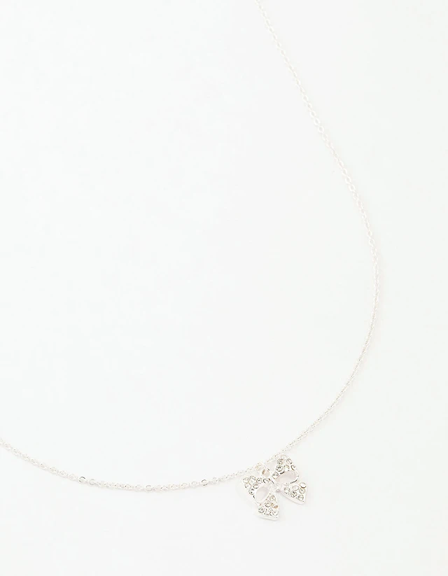 Sterling Silver White Gold Plated Cubic Zirconia Dainty Bow Neckalce