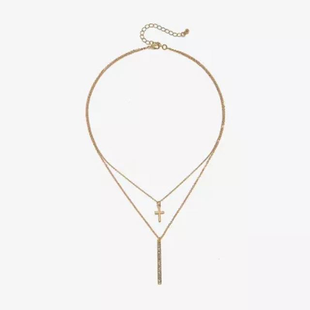 Gold Plated Cubic Zirconia Cross Letter A Layered Necklace