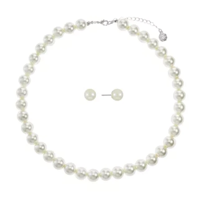 Liz Claiborne Gold Tone Pendant Necklace And Drop Earring Womens White Simulated Pearl Round Hypoallergenic 2-pc. Jewelry Set