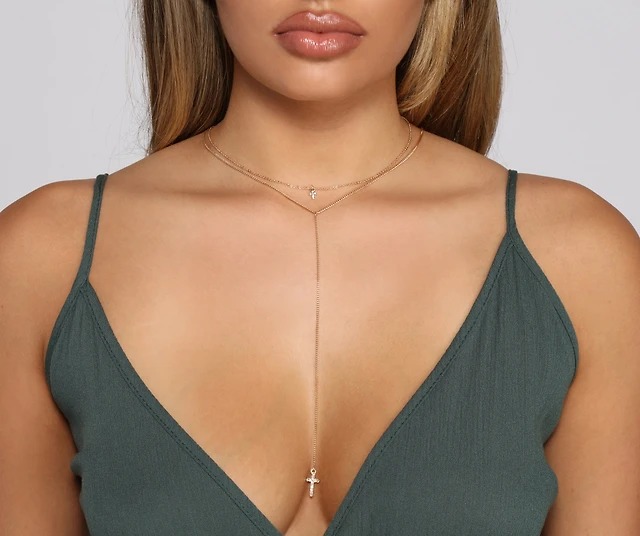 Gold Plated Cubic Zirconia Cross Letter E Layered Necklace