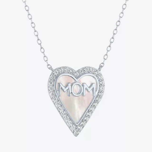 "Mom" Pink & White Lab-Created Sapphire Sterling Silver Heart Pendant Necklace