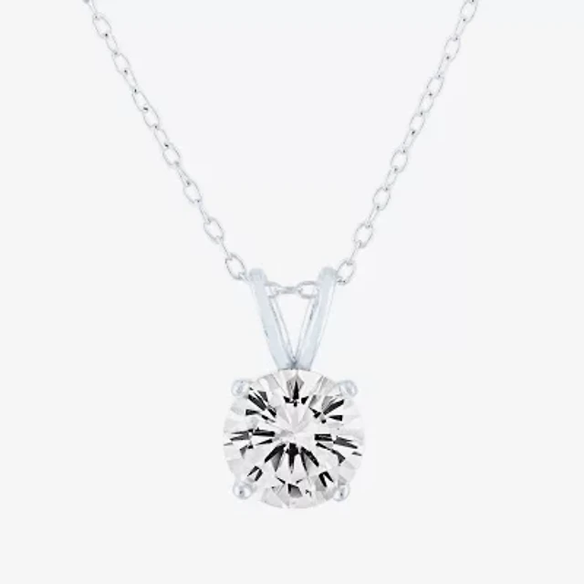 Silver Treasures Womens White Cubic Zirconia Sterling Silver 16 Inch Pendant Necklace