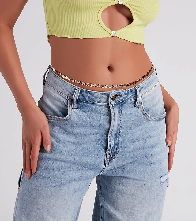 Liz Claiborne Wavy Coin Womens Paperclip 17 Inch Pendant Necklace