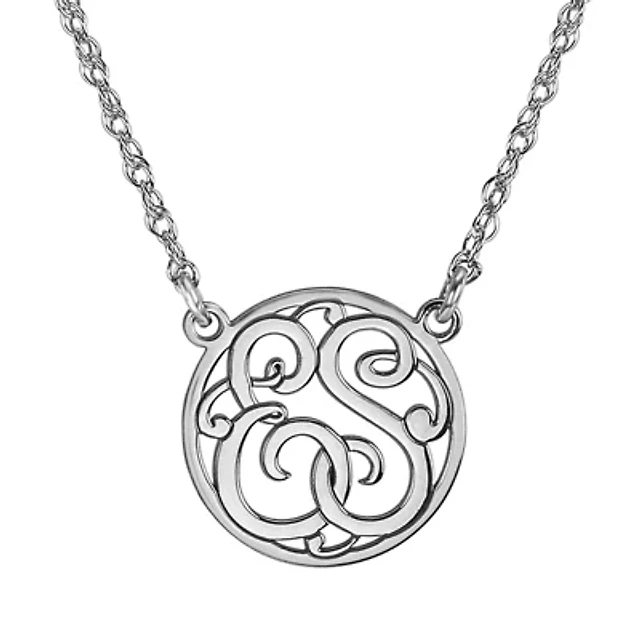Personalized Sterling Silver Vine Monogram Initials Coin Pendant Necklace