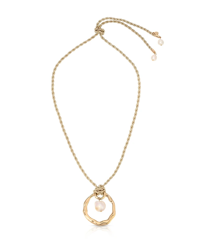 Waterproof Gold Plated Stainless Steel Circle Pendant Dainty Cord Necklace