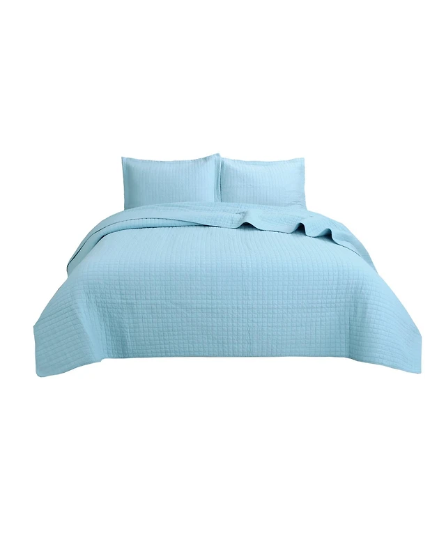 City Scene Woven Grid Microfiber Pink 3 Piece Quilt Set-Full/Queen